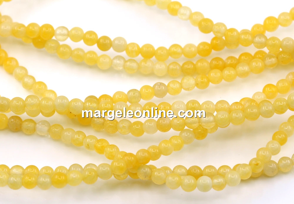 Agate beads, round, pastel yellow, 3.5mm