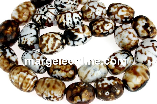 Crab fire agate beads , beige shades - deep brown , shape : rounded tube multifaceted , size : 18x14mm . Price is for a string of 21 beads.