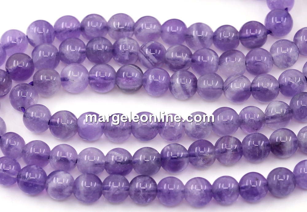 Amethyst beads, shape: round, size: 6.5mm, string length: 39cm. The price is for a string without a clasp.
