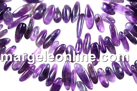 Amethyst beads, shape: rounded flakes, size: 10x5-15x5mmmm, string length: 40cm. Price is for a string.