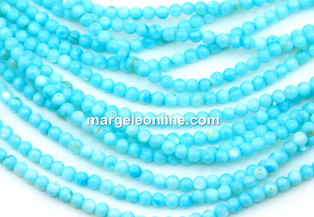 Natural mother-of-pearl beads, size: 4mm. The price refers to a string of about 38cm.
