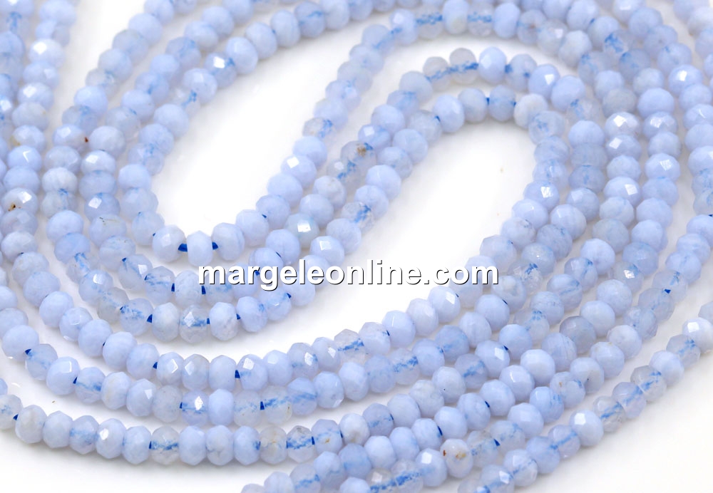 Blue chalcedony beads, faceted rondelle, 3.3mm
