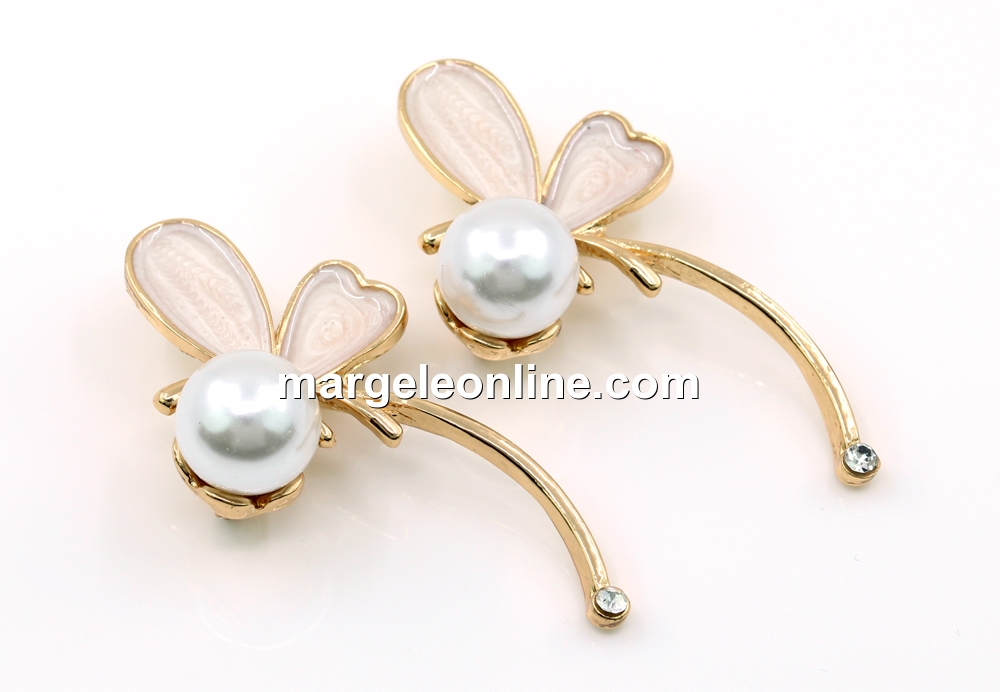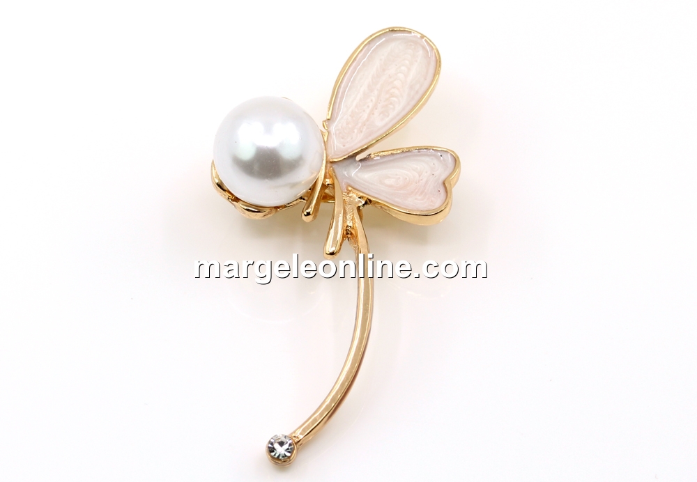 Metallic brooch with enamel, crystal and pearl, ideal for a martisor, total size: 5.1x2.7cm. The price is for 1 brooch.