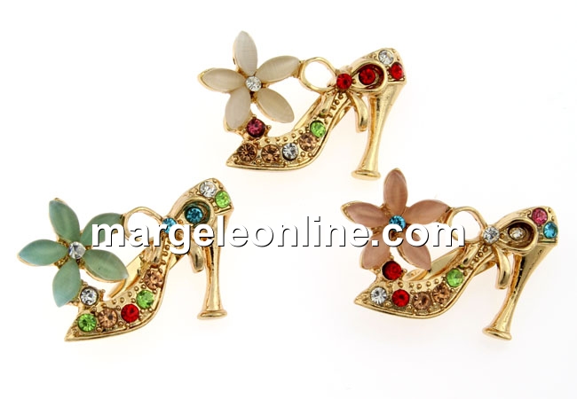 Brosa, metalica, cu cristale, dimensiune 28x18mm. Pretul este pentru un set cu 3 bucati ca in imagine.
