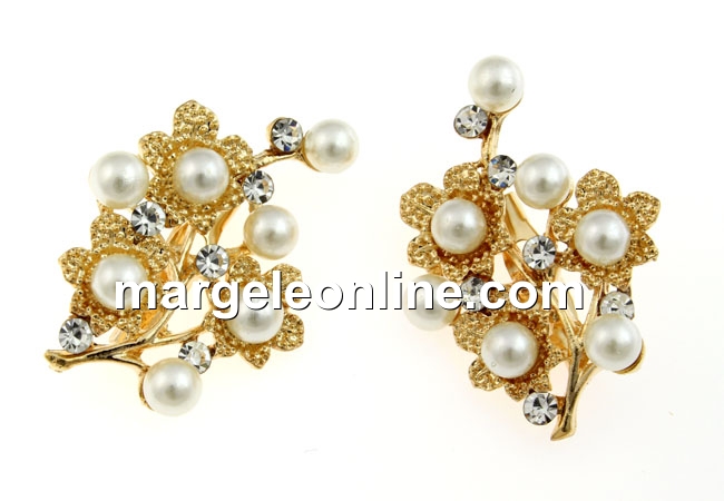 Brosa, cu cristale si perle, 40x28mm - x3