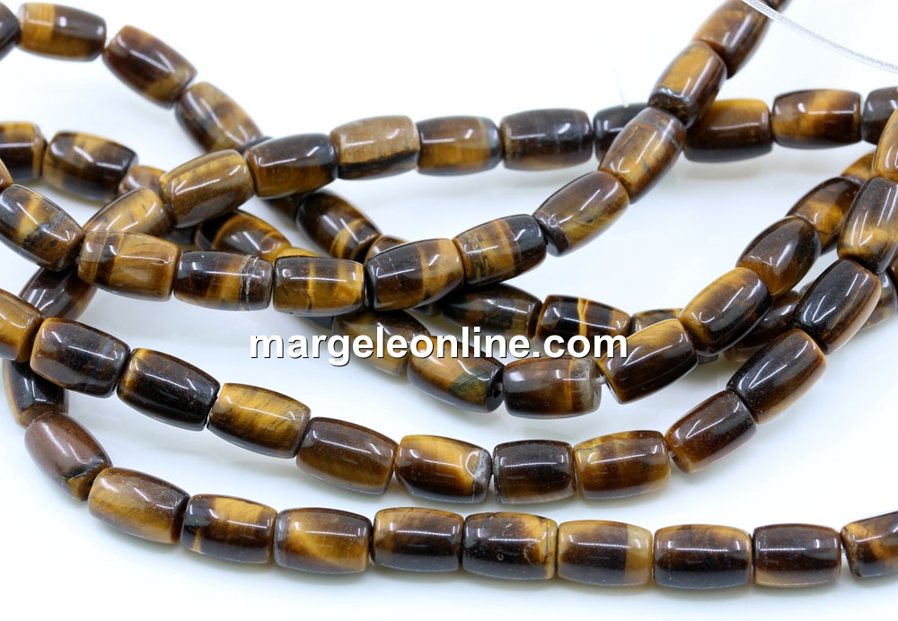 Brown Tiger Eye beads, shape: barrel, size: 8.5x6.5mm, string length: 40cm. The price is for one string without a clasp.