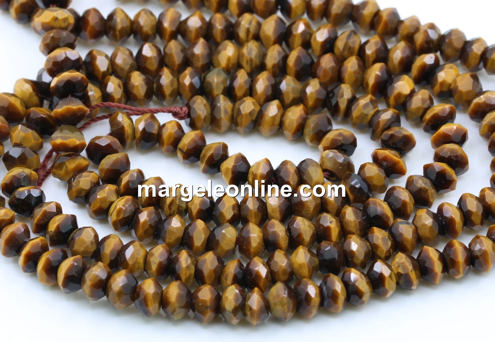 Brown Tiger Eye beads, shape: faceted roundels, size: 6x3.5mm, string length: 39-40cm. The price is for one string without a clasp.