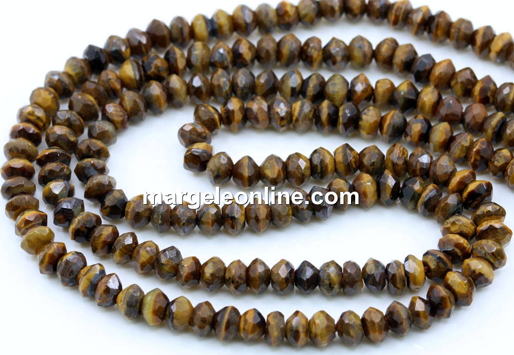 Brown tiger eye beads, faceted rondelle, 6mm