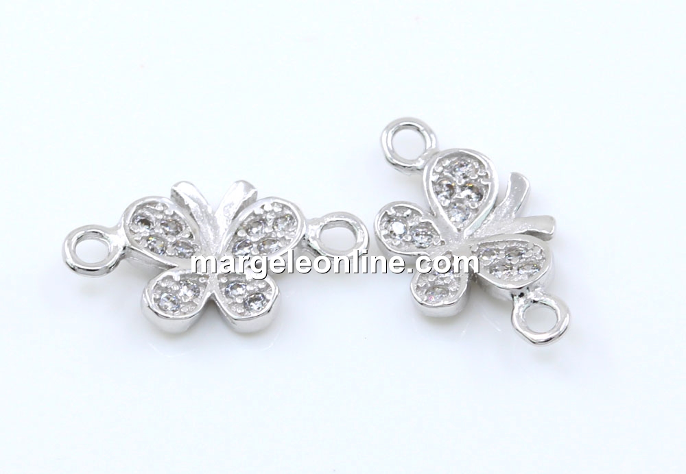 Butterfly link with crystals, silver 925 rhodium plated, 13mm - x1