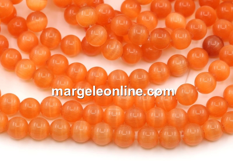 Cat's eye beads, orange, 6mm