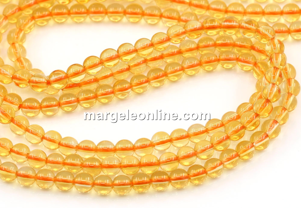 Citrine beads, shape: round, size: 4mm, string length: 38.5cm. The price is for one string without a clasp.