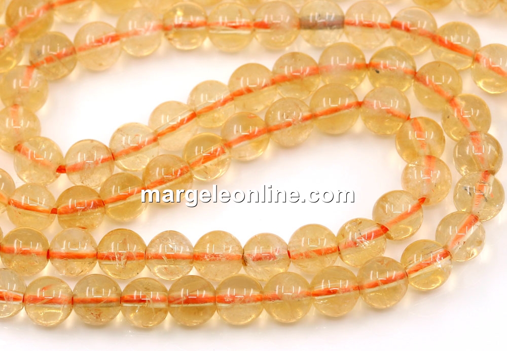 Citrine beads, shape: round, size: 6mm, string length: 39cm. The price is for a string without a clasp.