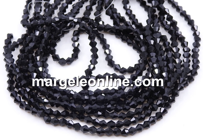 Crystal bead string, faceted biconical, transparent, size: 4mm, hole size: 1mm. The price is for 1 string of approx. 31-32cm.