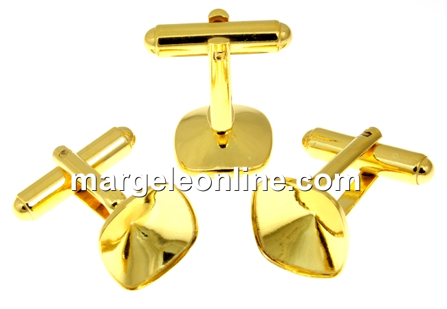 CuffLink base, for Swarovski 4470 of 12mm, gold-plated 925 silver, marked, total size: 19mm. The price is for 1 pair.