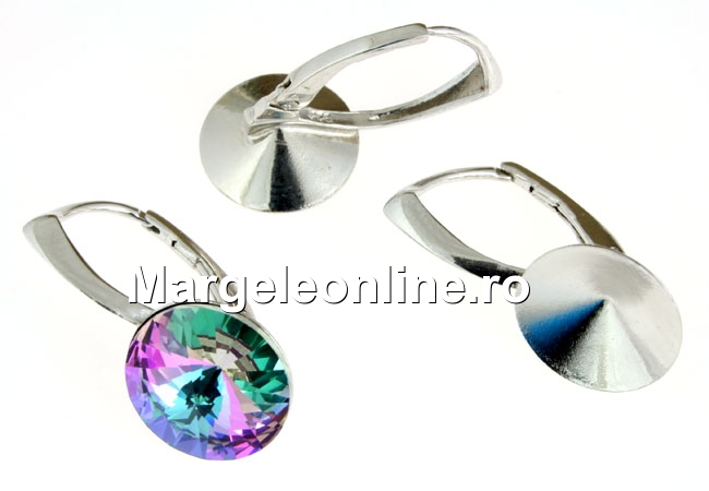 Earring base, for rivoli of 12mm, rhodium-plated 925 silver, marked, size: 23x12mm. The price is for 1 pair. The product shown in the image is used by way of illustration and can be purchased from the Swarovski Rivoli or Fancy Rivoli categories.