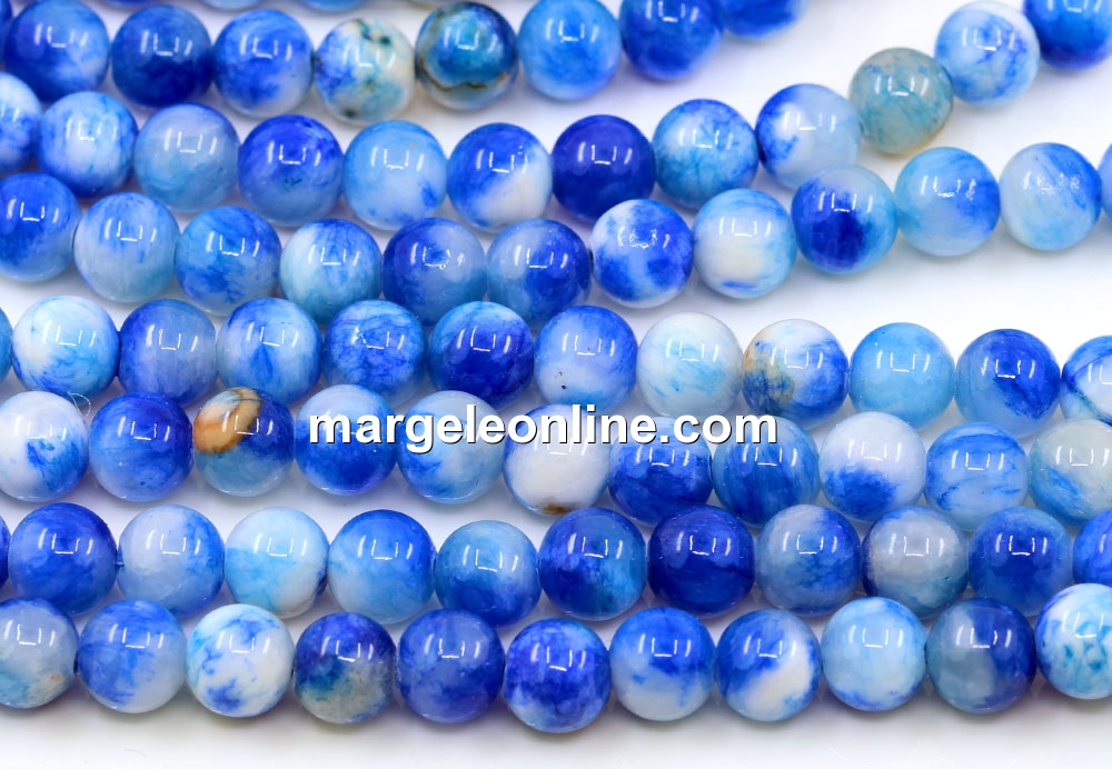 Gradient blue Jade beads, round, 6.5mm
