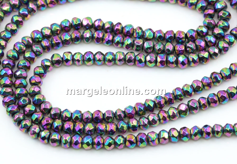 Hematite beads, faceted roundel, rainbow, 3.5mm