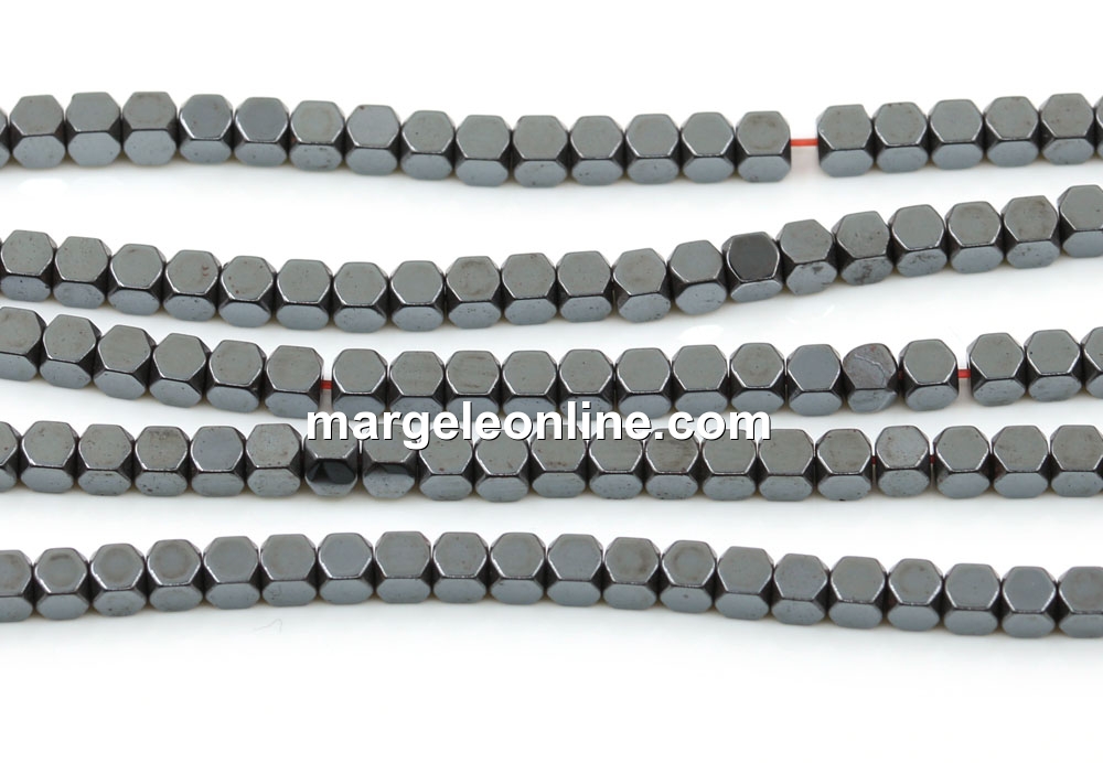 Electroplated hematite beads, shape: hexagon cube, size: 3x3mm, string length: 39-40cm. The price is for a string without a clasp.