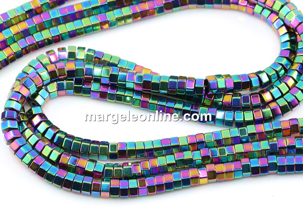 Electroplated hematite beads, shape: hexagon roundel, size: 4x2mm, string length: 40cm. The price is for a string without a closure system.