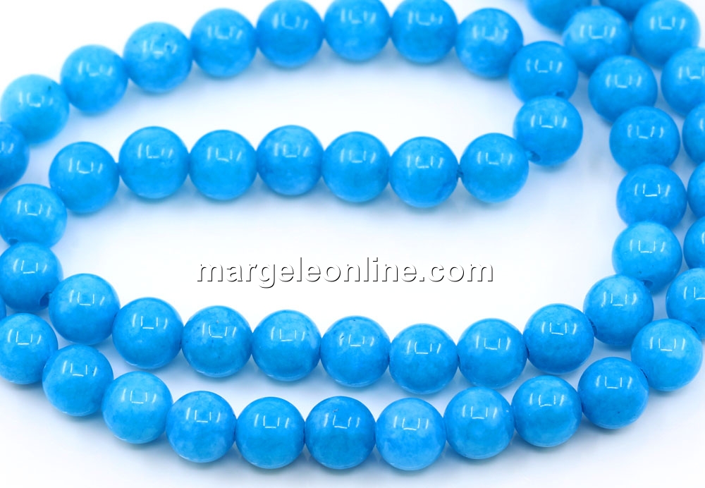 Jade beads, round, blue, 6.5mm