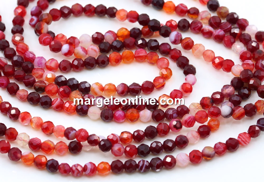 Margele agate dantelate, forma: rotund fatetat, marime: 4mm, lungime sirag: 38cm. Pretul este pentru un sirag fara sistem de inchidere.