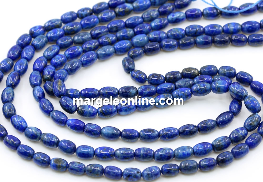 Margele lapis lazuli, forma: butoias oval, marime: 6x4mm, lungime sirag: 40cm. Pretul este pentru un sirag fara sistem de inchidere.