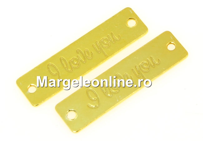 Link, engraved, gold-plated 925 silver, I love you, 19x5mm - x1