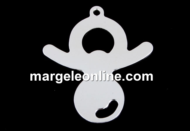 Link, pacifier, 925 silver, size: 20x18x0.4mm. The price is for 1 piece.