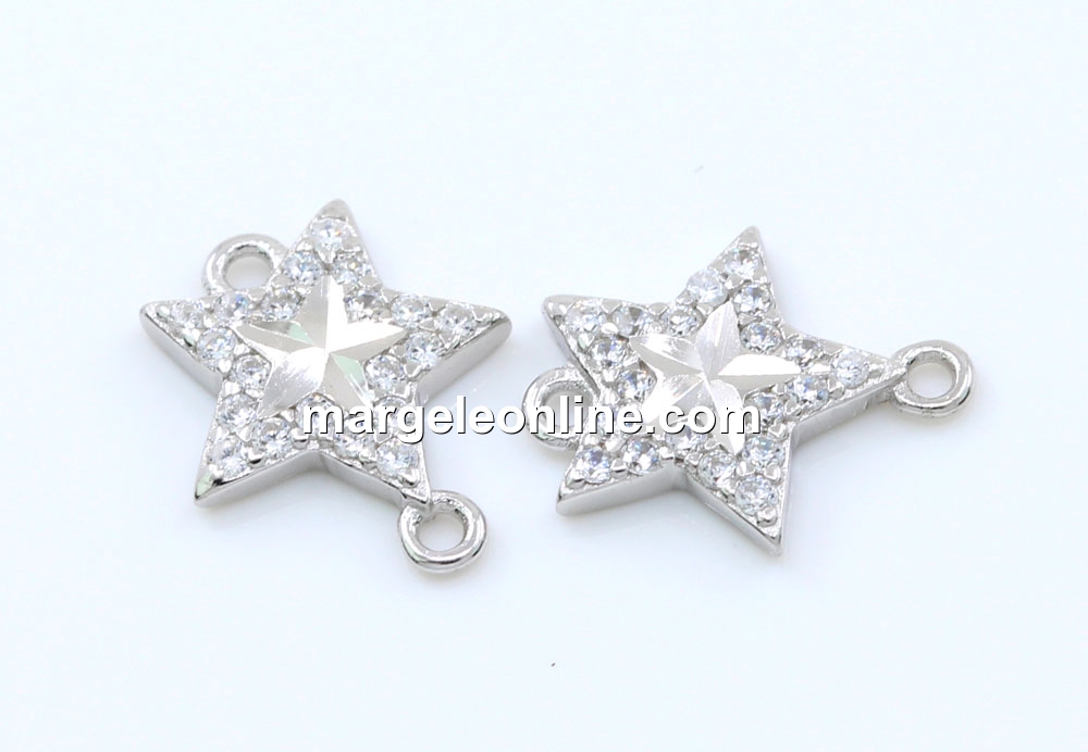 Link star with crystals, 925 silver rhodium plated, 11mm - x1