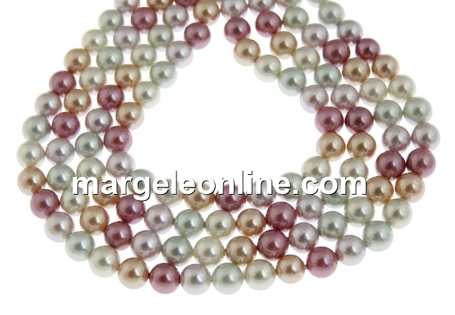 Crystal Mallorca pearls covered with layers of natural mother-of-pearl, shape: round, size: 6mm. The price refers to 1 string without a lock of 40 cm.
