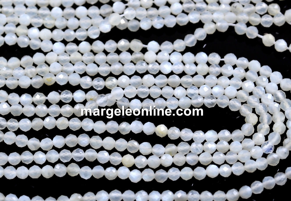 Margele piatra lunii, forma: rotund fatetat, marime: 3.3mm, lungime sirag: 39cm. Pretul este pentru un sirag fara sistem de inchidere.