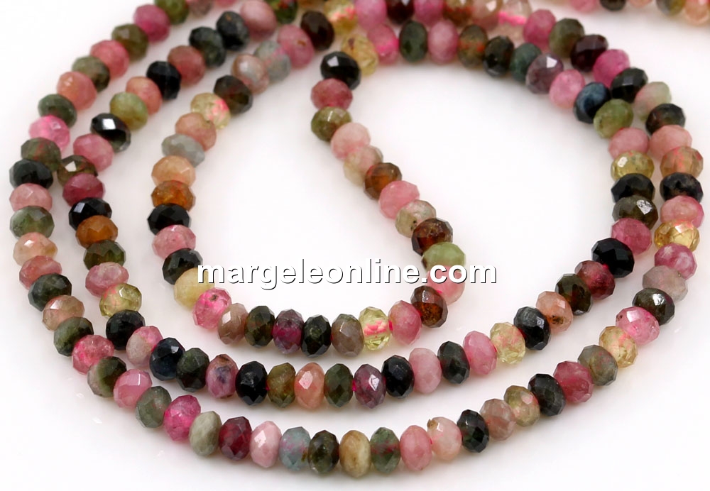 Multicolor Tourmaline Beads, faceted rondelle, 3.3mm