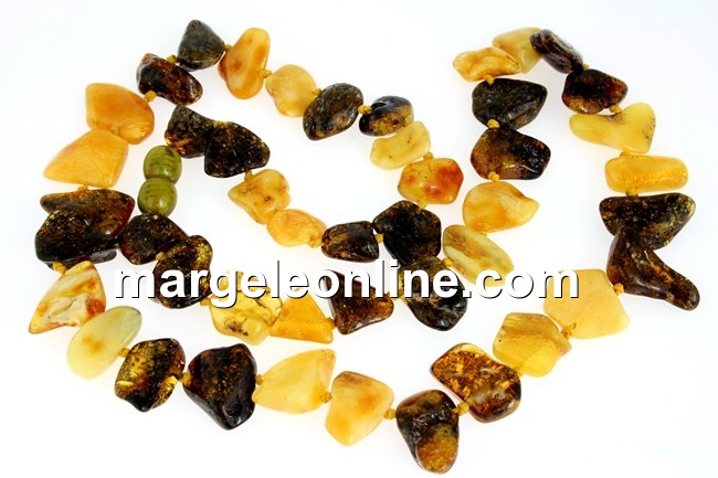 Necklace from natural amber chips beads , chips progressive variable size 10 -18mm , total length necklace : 50 cm , equipped with lock screw . Price is for one necklace .