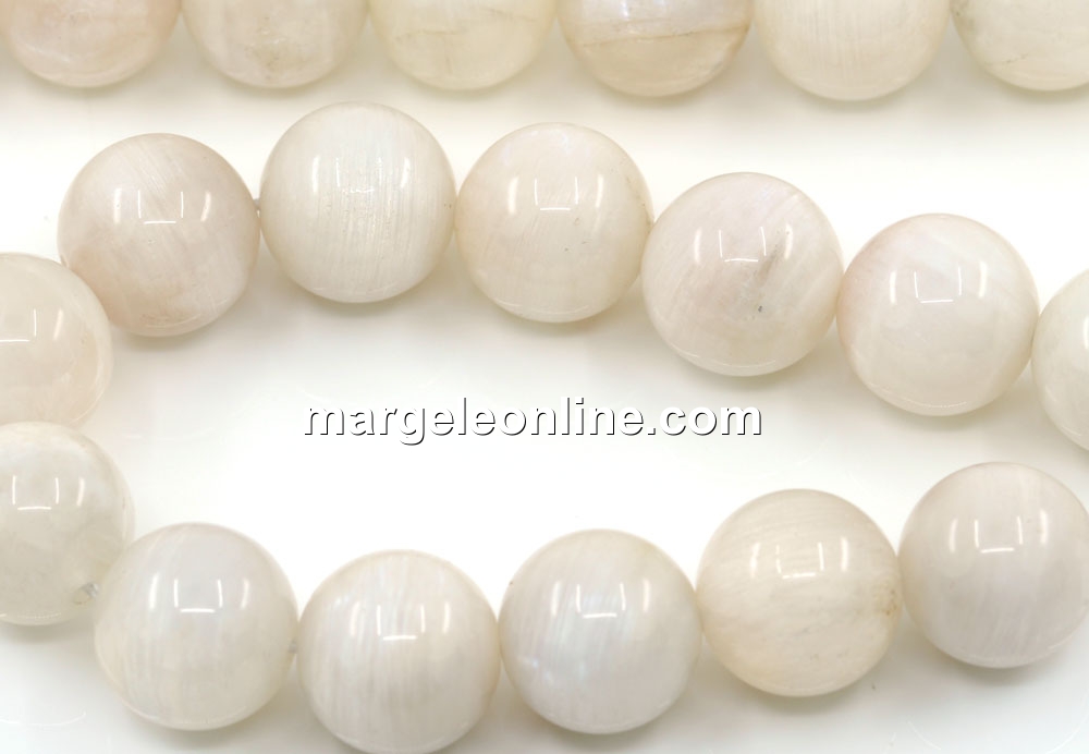 Natural moonstone beads, shape: round, size: 14mm, string length: 39cm. The price is for a string without a clasp.