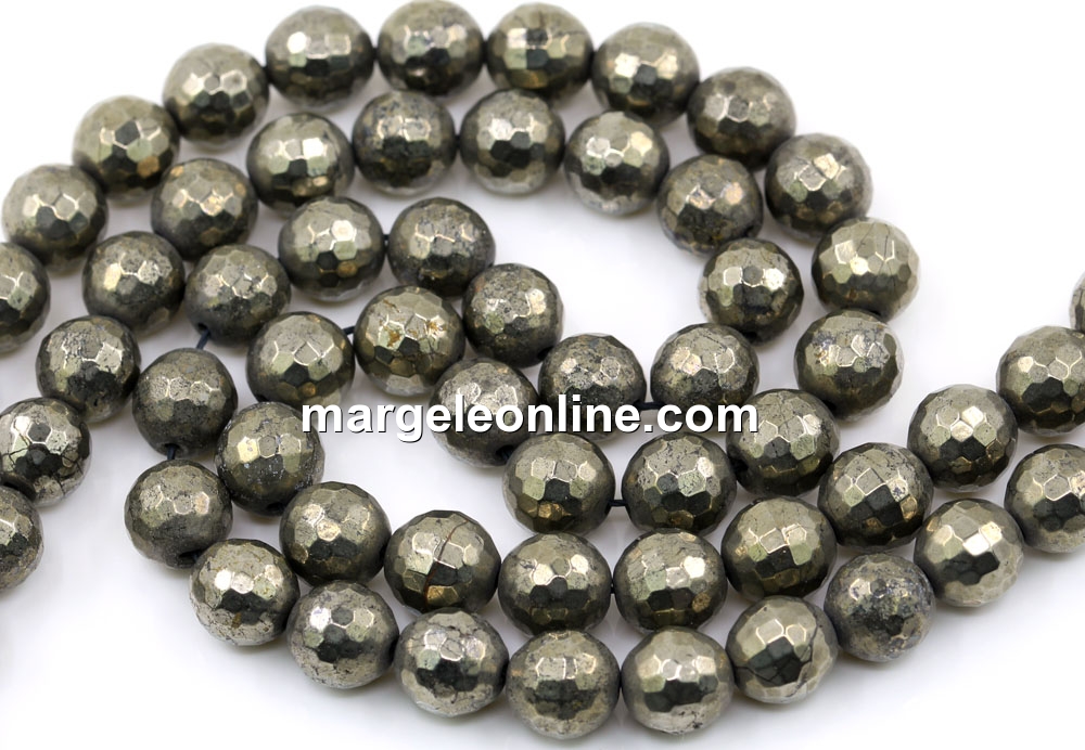 Natural pyrite beads, shape: faceted round, size: 8mm, string length: 39cm. The price is for a string without a clasp.