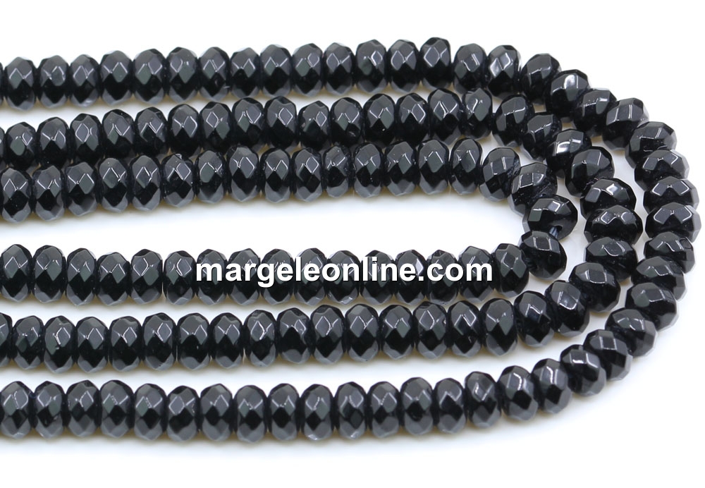 Onyx beads, faceted roundels, 4.5mm