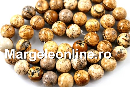 picture jasper beads, beige shades - brown, shape: round, size: 8.5mm. The price refers to a string without clasp 39-40cm with 47 beads.