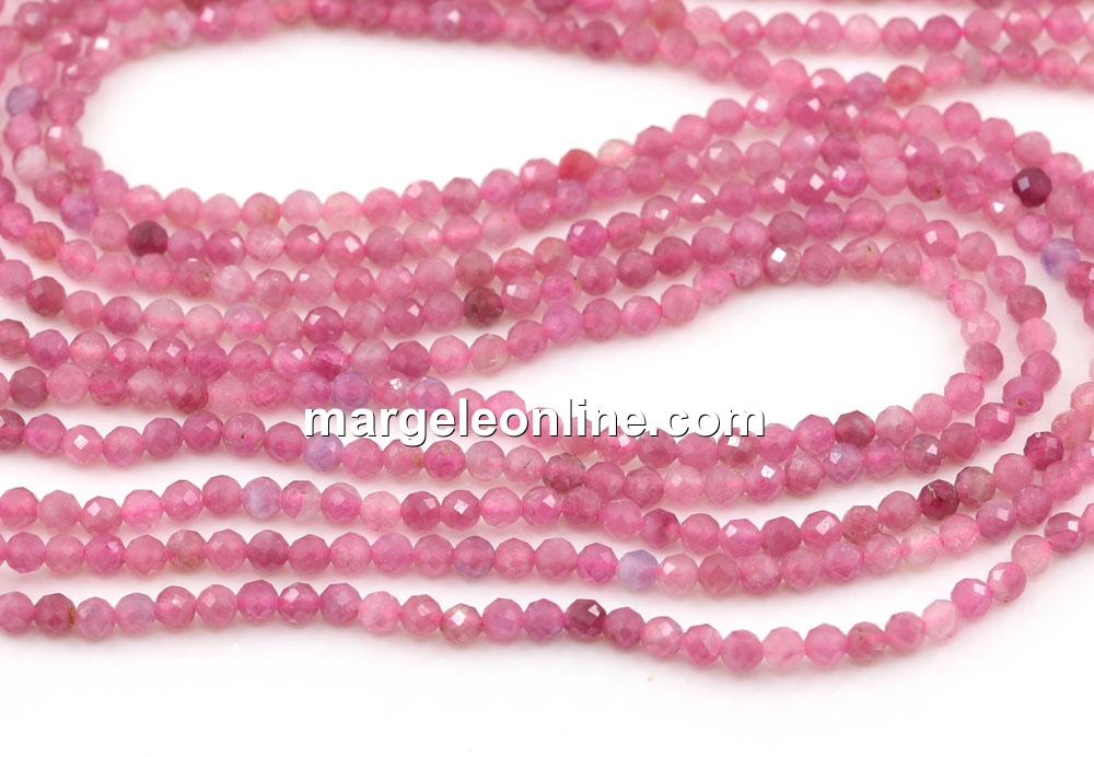 Pink Tourmaline beads, round faceted, 2.6mm