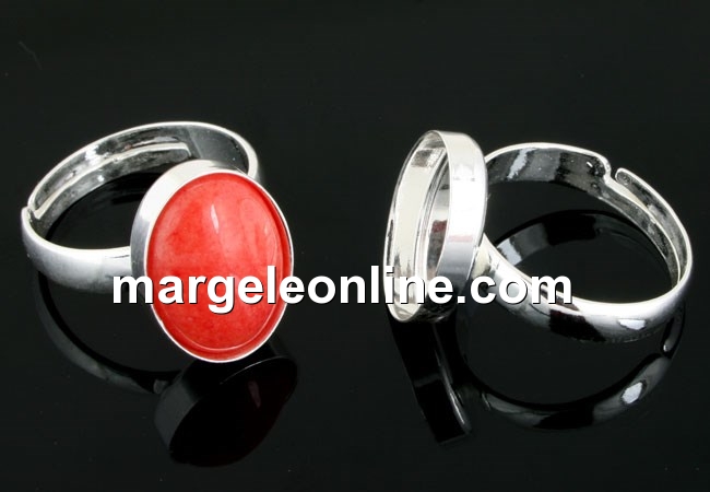 Ring base, 925 silver, oval cabochon, 14x10mm, adjustable, - x1