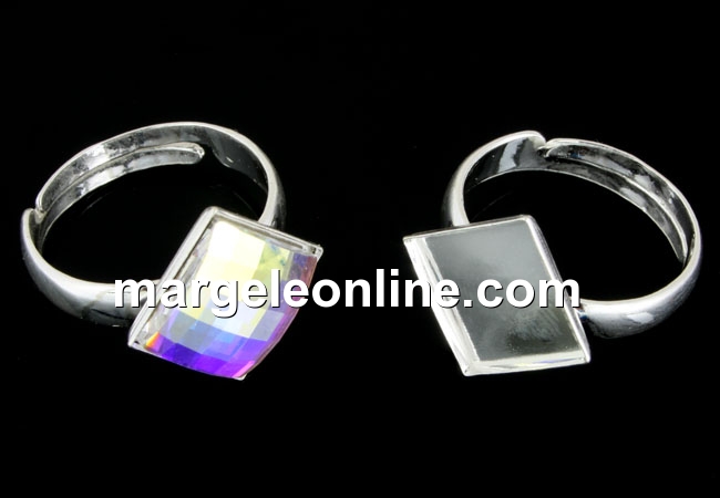 Ring base, 925 silver, square cabochon 10mm, adjustable, - x1
