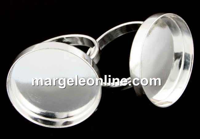 Ring base, inside: of 17.9mm, 925 silver, marked, with tray for cabochon of 20mm. The price is for 1 piece.