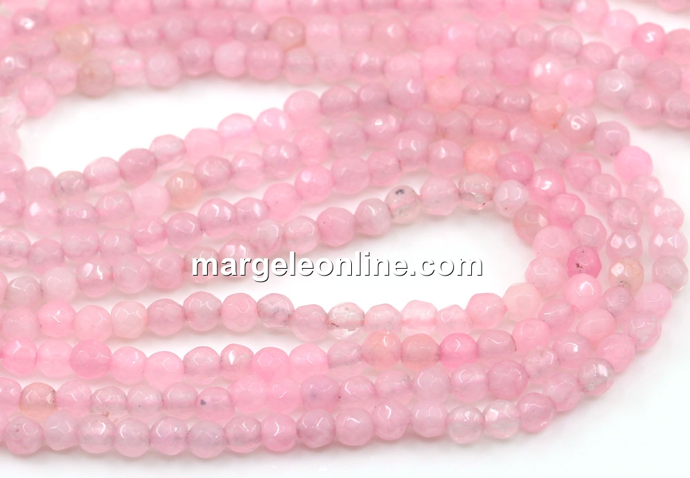 Rose quartz beads, shape: faceted round, size: 3.3mm, string length: 36cm. The price is for a string without a clasp.