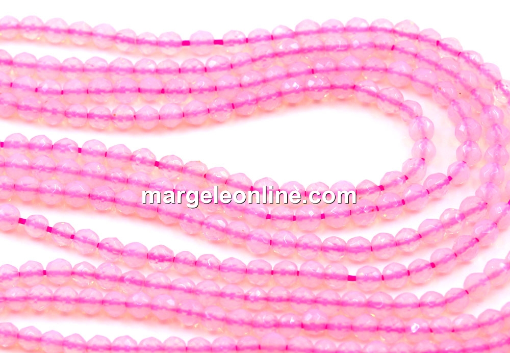 Rose quartz beads, shape: faceted round, size: 3mm, string length: 38cm. The price is for a string without a clasp.