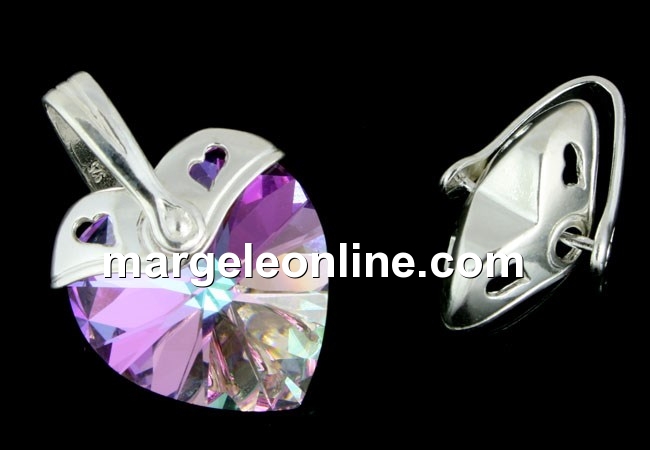 Set Pendant bail, 925 silver, marked, size: 18x15mm. The price is for 1 piece. The product shown in the image is used by way of illustration and can be purchased from the Swarovski Elements category. (Pendant, heart 18mm)