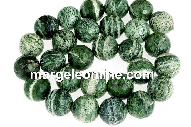 Serpentine silver beads , shape : round faceted, size: 12mm . Price is for a string of 33 beads.