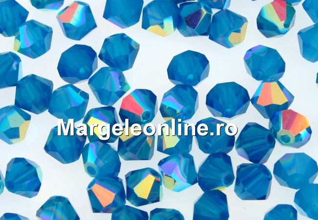Swarovski, bicone bead, caribbean blue opal AB, 4mm - x20