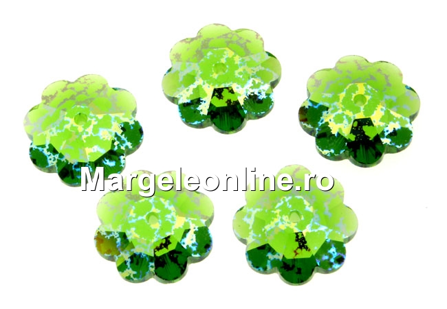 Swarovski, marguerite, fern green white patina, 12mm - x4