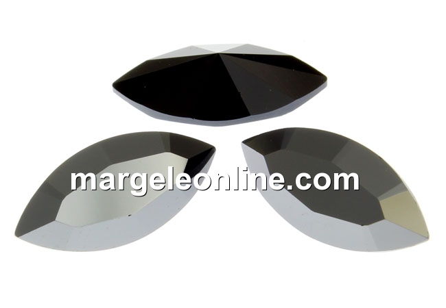 Swarovski navette, fancy chaton, jet hematite, 15mm - x2