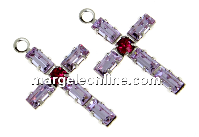 Swarovski, rhodium-plated pendant, cross,violet, 19mm - x1