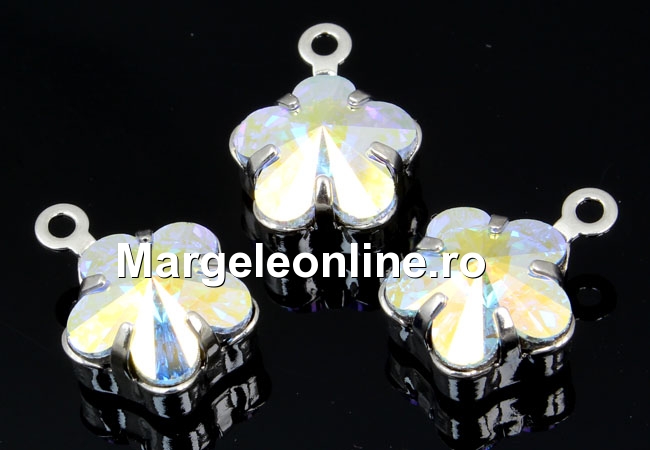 Swarovski, rhodium-plated pendant, flower, aurora borealis, 13mm - x2